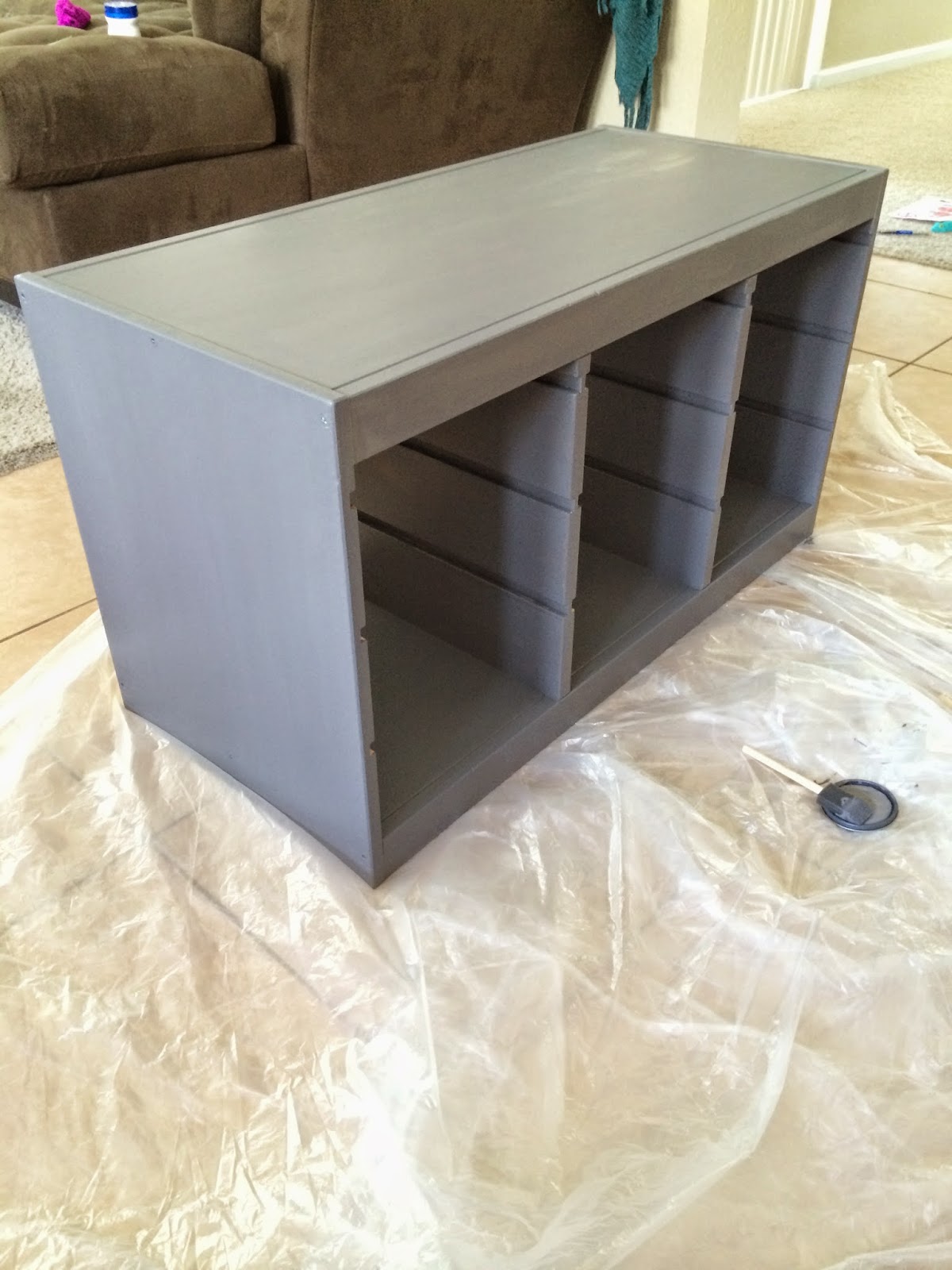 We had a lot of pieces from the Ikeas Trofast collection from the playroom. We are planning on a redo in there as well, so instead of selling it all I decided to update it, see below for more details.
